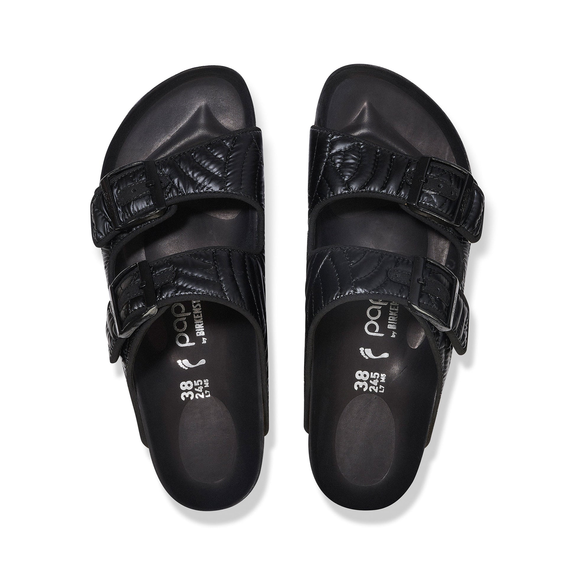 Taking Arizona's iconic design to new heights, and your style along with it. The new Papillio Flex Platform sandals are designed on a flexible sole and contoured footbed, this pair levels up your comfort with all-day support. The upper material is inspired by the traditional Japanese Seigaiha pattern, with stitched concentric circles embossing the padded nylon. This gives a lightweight winter insulation and a contemporary twist on iconic Arizona upper.
