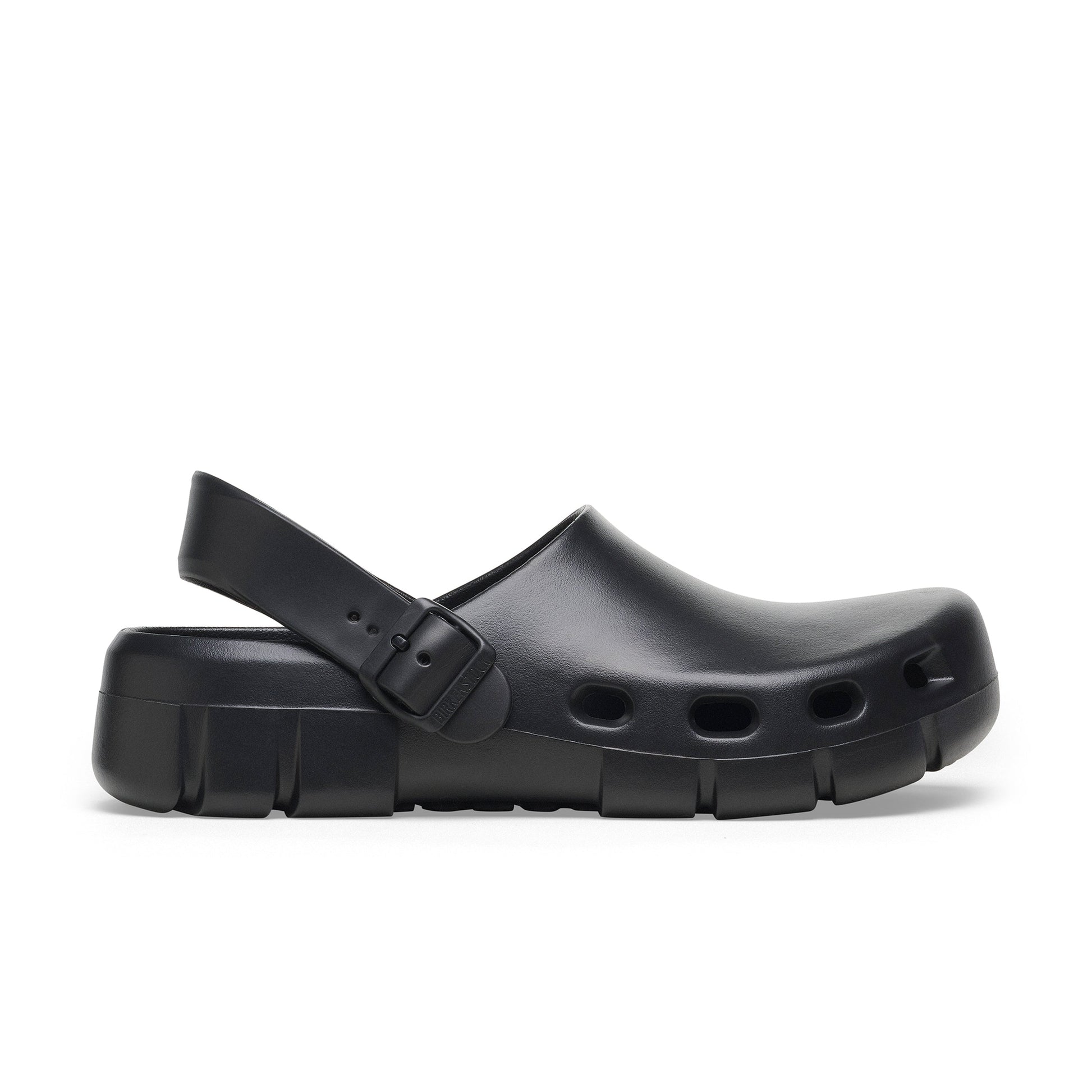 Introducing the all-new Birki Flow, our first post-sport recovery clog. Designed around the contours of our iconic footbed and bestselling Birki clogs, this new lightweight EVA (ethylene vinyl acetate) model is ultra-breathable, highly flexible, odour resistant and water-friendly. This EVA clog provides the support that Birkenstock wearers know and love along with the added comfort of air circulation from strategically placed vents that aid breathability. It is completed with classic Birkenstock design cues, from the adjustable backstrap to the moulded buckle.