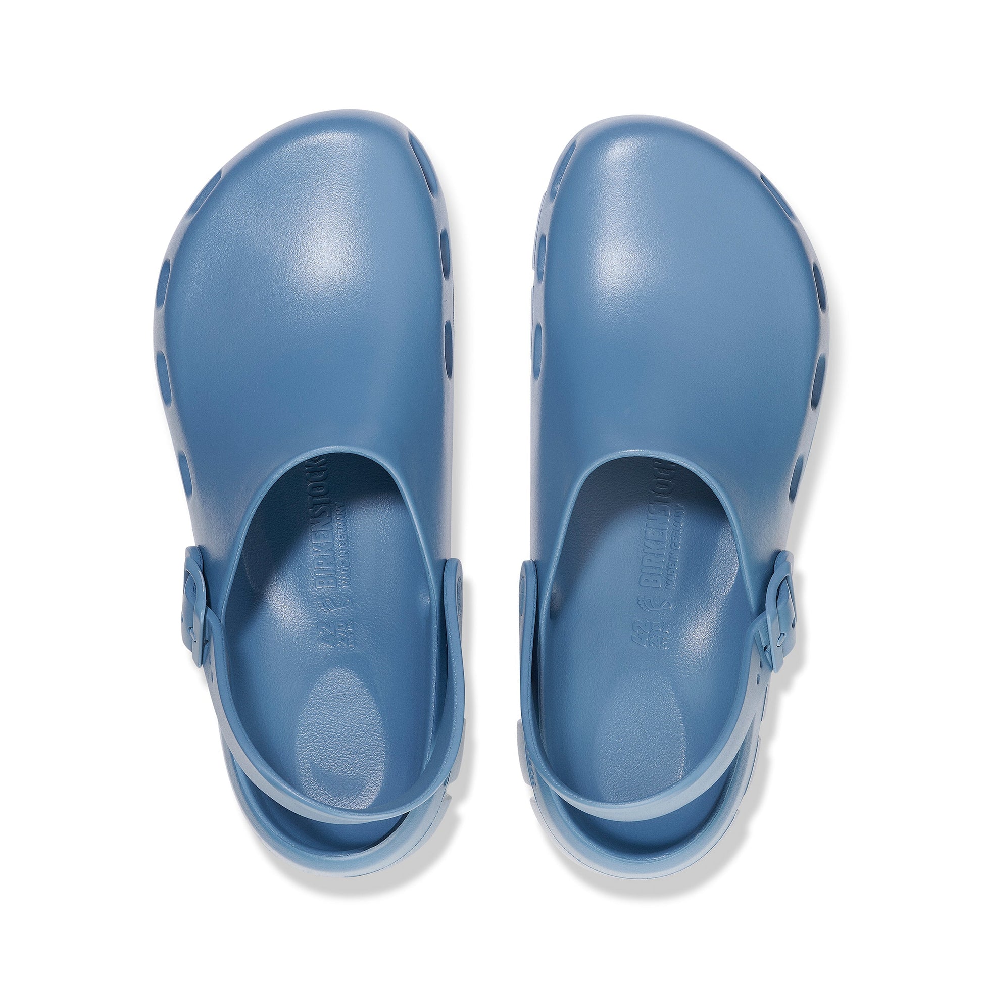 Introducing the all-new Birki Flow, our first post-sport recovery clog. Designed around the contours of our iconic footbed and bestselling Birki clogs, this new lightweight EVA (ethylene vinyl acetate) model is ultra-breathable, highly flexible, odour resistant and water-friendly. This EVA clog provides the support that Birkenstock wearers know and love along with the added comfort of air circulation from strategically placed vents that aid breathability. It is completed with classic Birkenstock design cues, from the adjustable backstrap to the moulded buckle.