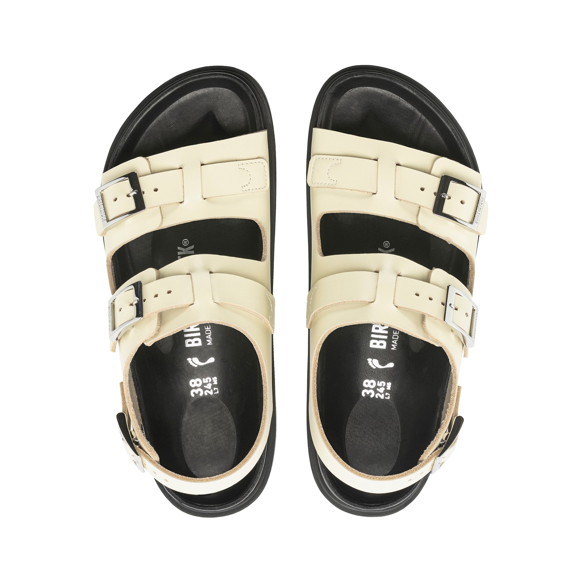 Unique layered straps and shiny buckles give Birkenstock’s new statement style Cannes a sophisticated edge. This Exquisite style features the original Birkenstock cork-latex footbed wrapped in luxuriously smooth leather for a premium touch and provides the ultimate all-day support.