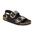 The Birkenstock Milano: Maximum grip, stability, and a perfect fit. The Big Buckle version features large, elegant pin buckle closures. The semi-exquisite footbed is fully lined with a soft piumato leather, making it exceptionally comfortable. The upper is made from high-quality natural leather with a shiny patent coating.